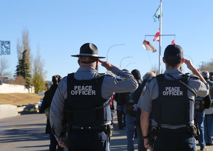 Airdrie’s Field of Crosses ceremony was held Saturday morning on Veterans Boulevard, as residents and veterans gathered to honour local service members and first responders who have died. Organized by the Army, Navy and Air Force Veterans of Canada (ANAVETS) with support from the Royal Canadian Legion Branch 288 (Airdrie) and the Veterans Association Food Bank, the display has grown from 20 crosses in its first year to 62 this year, organizers said. A motorcade of motorcycles and emergency vehicles made its way from the Town and Country Centre to the Field of Honour, where the crosses were placed in a short ceremony. Motorcycles led the procession. Once on site, members of the public gathered near the flagpole for the service. Under clear skies, volunteers and dignitaries placed 62 crosses — each bearing the name of a local veteran — along Veterans Boulevard. The display will remain in place through Remembrance Day. Among those attending the ceremony were newly elected Mayor Heather Spearman, councillors Ron Chapman, Chad Stewart, and Candice Kolson, Airdrie-East UCP MLA Angela Pitt, Independent MLA for Airdrie-Cochrane Peter Guthrie, former mayor Peter Brown, and former councillor Tina Petrow, along with other local dignitaries and community representatives. Pitt and Guthrie also spoke during the ceremony. Spearman thanked organizers and community members for maintaining what she called “a powerful tribute our city proudly displays for our veterans.” “We acknowledge and appreciate ANAVETS — the Army, Navy and Air Force Veterans — the Royal Canadian Legion Branch 288 (Airdrie) and the Veterans Association Food Bank for supporting this memorial,” Spearman said. “Veterans Boulevard, with the crosses and our new memorial art installations, creates a space of importance and honour. What we see here today is a community refusing to forget and committing to create spaces to remember.” She added that each cross represents “a name, a story and a family,” and thanked families for sharing their loved ones’ legacies. “May we never forget, may we always honour, and may Airdrie continue to be a place where the fallen are remembered and the living are supported. Lest we forget,” she said. Organizers said the intent of the annual ceremony is to ensure Airdrie’s fallen are remembered and never forgotten. Sign up to get the latest local news headlines delivered directly to your inbox every afternoon. Send your news tips, story ideas, pictures, and videos to news@discoverairdrie.com. You can also message and follow us on Twitter: @AIR1061FM. DiscoverAirdrie encourages you to get your news directly from your trusted source by bookmarking this page and downloading the DiscoverAirdrie app. To hear more on this story and others, stream us live here.